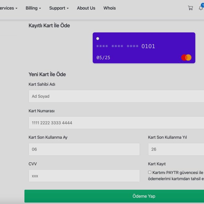 WHMCS PayTR Kart Kayıt ve Ödeme Modülü